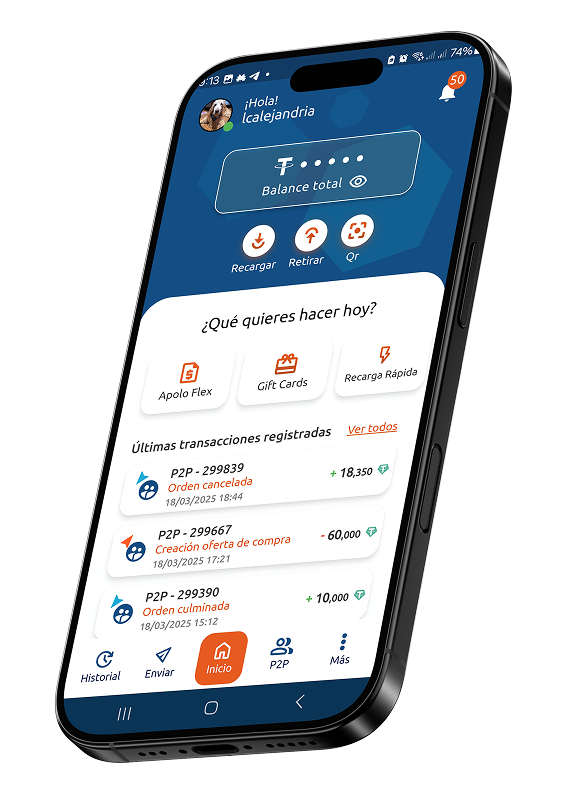 Con Apolo Pay, puedes tener tu cuenta en USDT en cuestión de minutos. Nuestra aplicación es intuitiva y fácil de usar, te permite acceder a tus fondos en tiempo real y realizar transacciones de forma segura al instante.